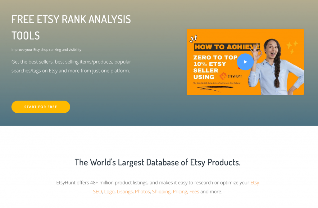 EtsyHunt is a data and business analysis tool specially designed for Etsy sellers. It can help you quickly get and analyze product,keyword,and shop data on Etsy,and improve your Etsy shop’s performance in search ranking,traffic,conversion rate,and sales volume.