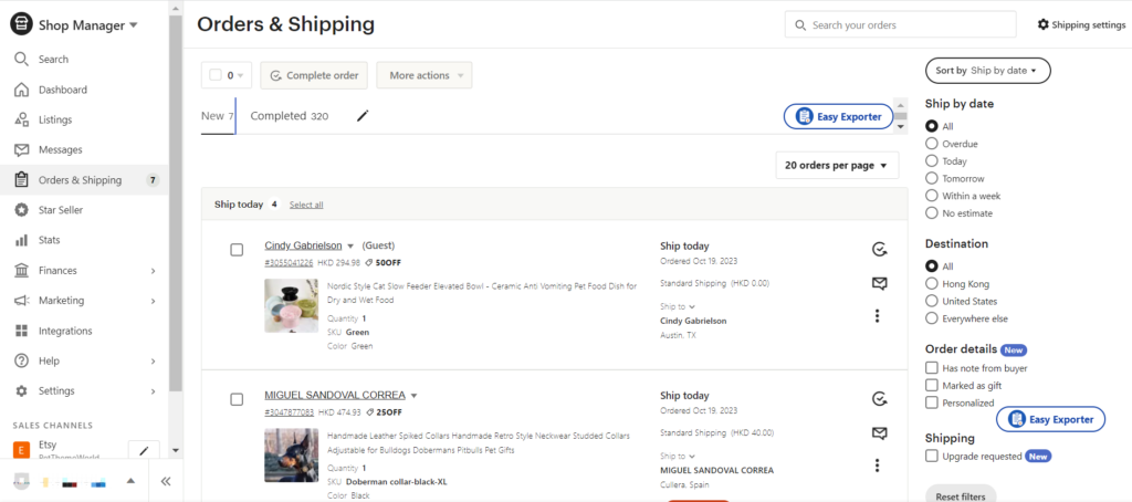 - Managing Orders: In your shop dashboard, navigate to the ‘Orders’ tab to view all your orders. Here, you can see order details, buyer information, and payment status.