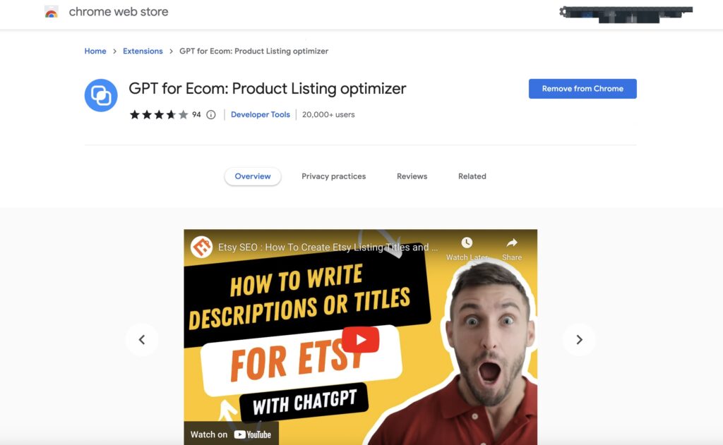 To use GPT for Ecom, you need to first download and install the GPT for Ecom extension. This is a Chrome extension that allows you to use ChatGPT to generate content on any Etsy merchandise page. Here are the installation steps: