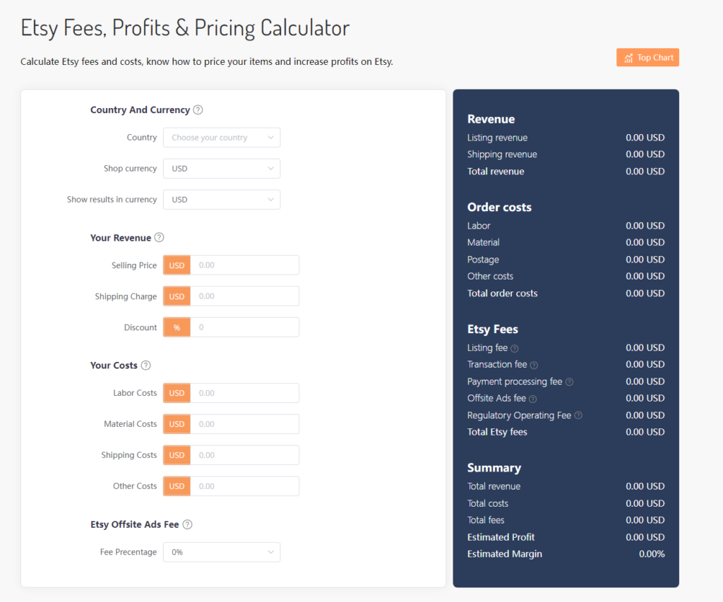 The EtsyHunt Calculator is a useful tool that helps Etsy sellers calculate fees and profits. It's very simple to use, just enter the following information: