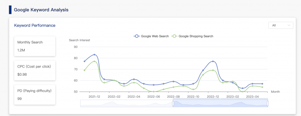 - 谷歌购物搜索:特指在谷歌购物页面的搜索趋势,表明更高的购物需求。